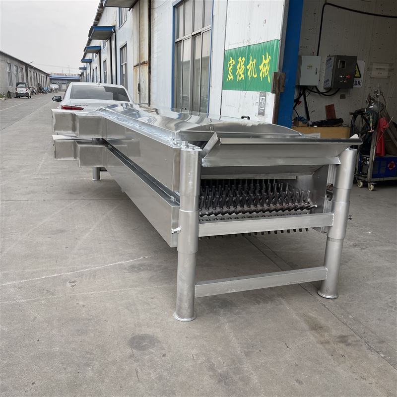 鸭子打毛机 鹅脱毛设备的外罩采用优质不锈钢制作而成,架体和滚筒均采用比较耐腐蚀的热镀锌材质制作而成,符合食品卫生标准,而且此款打毛机已经销往海内外多个省市和国家,并且此款脱毛机也已经得到了世界各地用户的好评反馈。此款鸡鸭脱毛机的脱毛效果和人工拔毛的效果是一样的,使用此款打毛机不会出现打断翅膀,打断爪子或者打破皮等现象的发生,而且使用此款打毛机还能很好的保护白条家禽的卖相,所以请广大用户放心订购适合您的产量的打毛机设备。