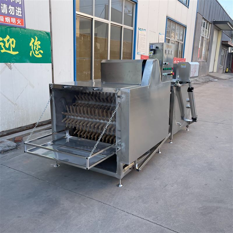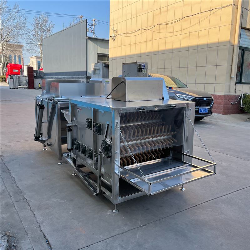 全自动鸭子打毛机 脱毛机整机都是由专业优质的不锈钢制作而成的一款符合食品卫生标准的一款中小型的家禽打毛机设备,此款打毛机已经销往海内外多个省市和国家,并且也已经得到了世界各地用户的好评反馈,此款打毛机比较节省人工,只需要人工将家禽宰杀后,直接投放到我们厂家的此款打毛机里,我们厂家的此款打毛机就能自动完成浸烫,自动完成脱毛等一系列的工序,所以说此款打毛机是暂时市面上比较节省人工的一款中小型的家禽打毛机设备。