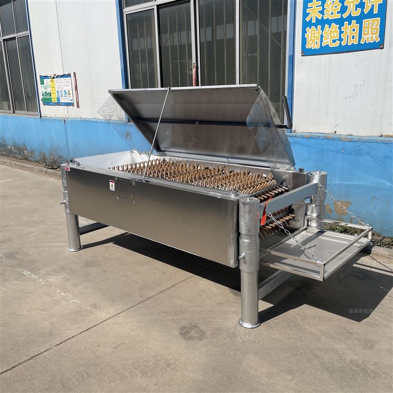 22轴鸽子打毛机 拔毛机的应用市场比较广泛,此款打毛机既可以单机使用,也可以配合国内外家禽屠宰设备生产厂家所生产销售的鸽子屠宰流水线使用的一款中小型的鸽子拔毛机设备。我们厂家的此款打毛机的电机采用国内优质电机生产厂家所生产销售的国标纯铜线电机,而且我们厂家承诺,凡是购买我们厂家的设备的用户,一年之内电机出现任何非人为原因的损坏的,我们厂家提供免费更换新电机的服务政策。我们厂家的此款打毛机的脱毛效果和人工拔毛的效果是一样的,使用此款打毛机不会出现打断翅膀,打断爪子或者打破皮等现象的发生,而且使用此款打毛机还能很好的保护白条鸽子的卖相。